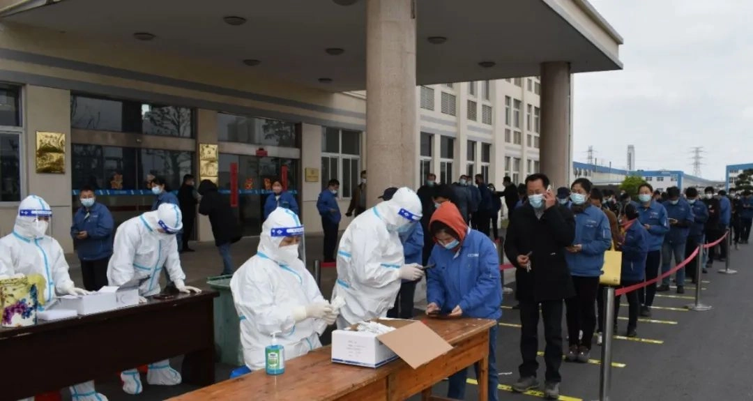 检测全程井然有序、快速高效。当天上午,厂区1200余名员工及在公司宿舍入住的员工家属已全部完成标本采样,坚持应检尽检、全员覆盖、不漏一人的原则,为推动日常工作有序开展提供坚强保障。