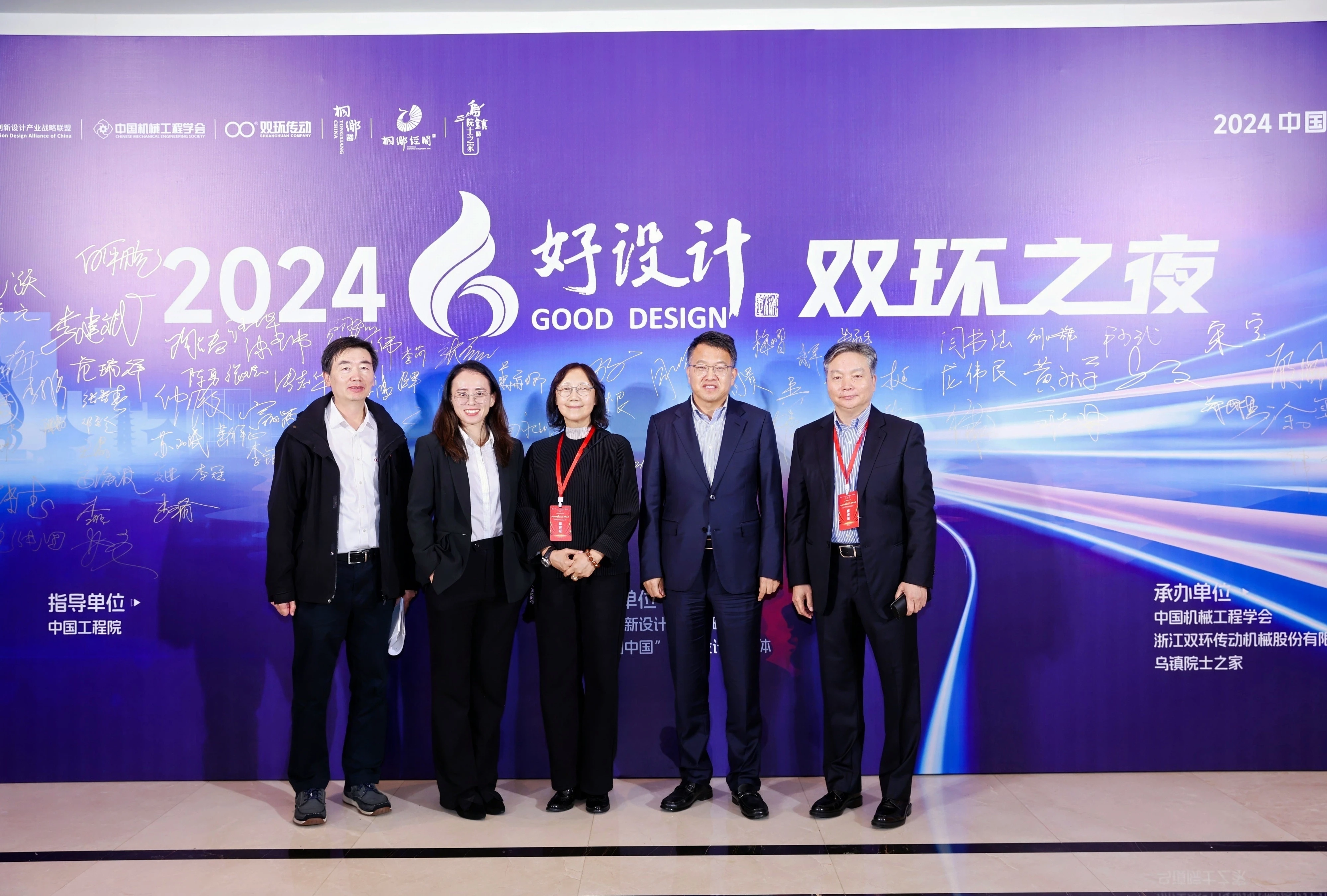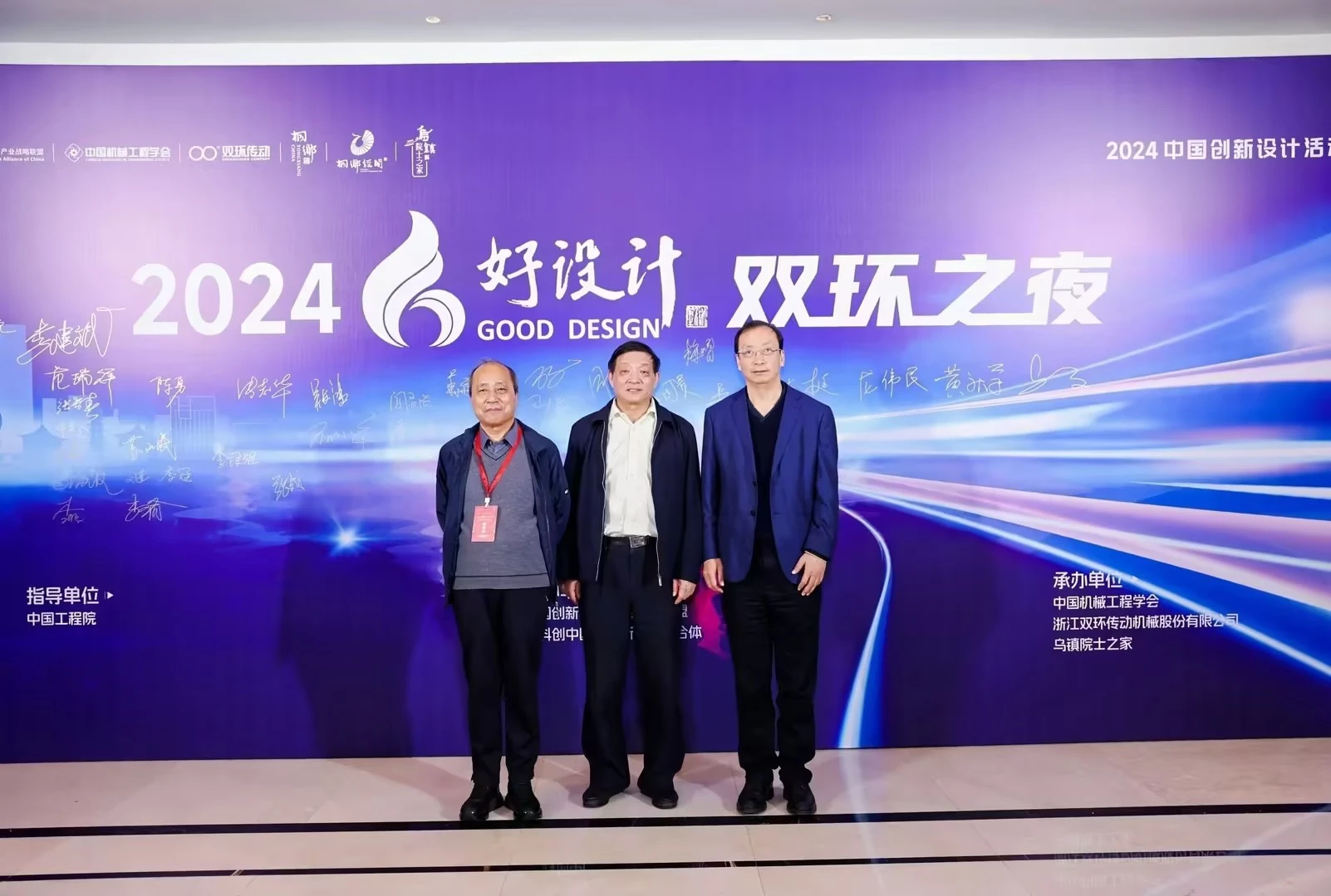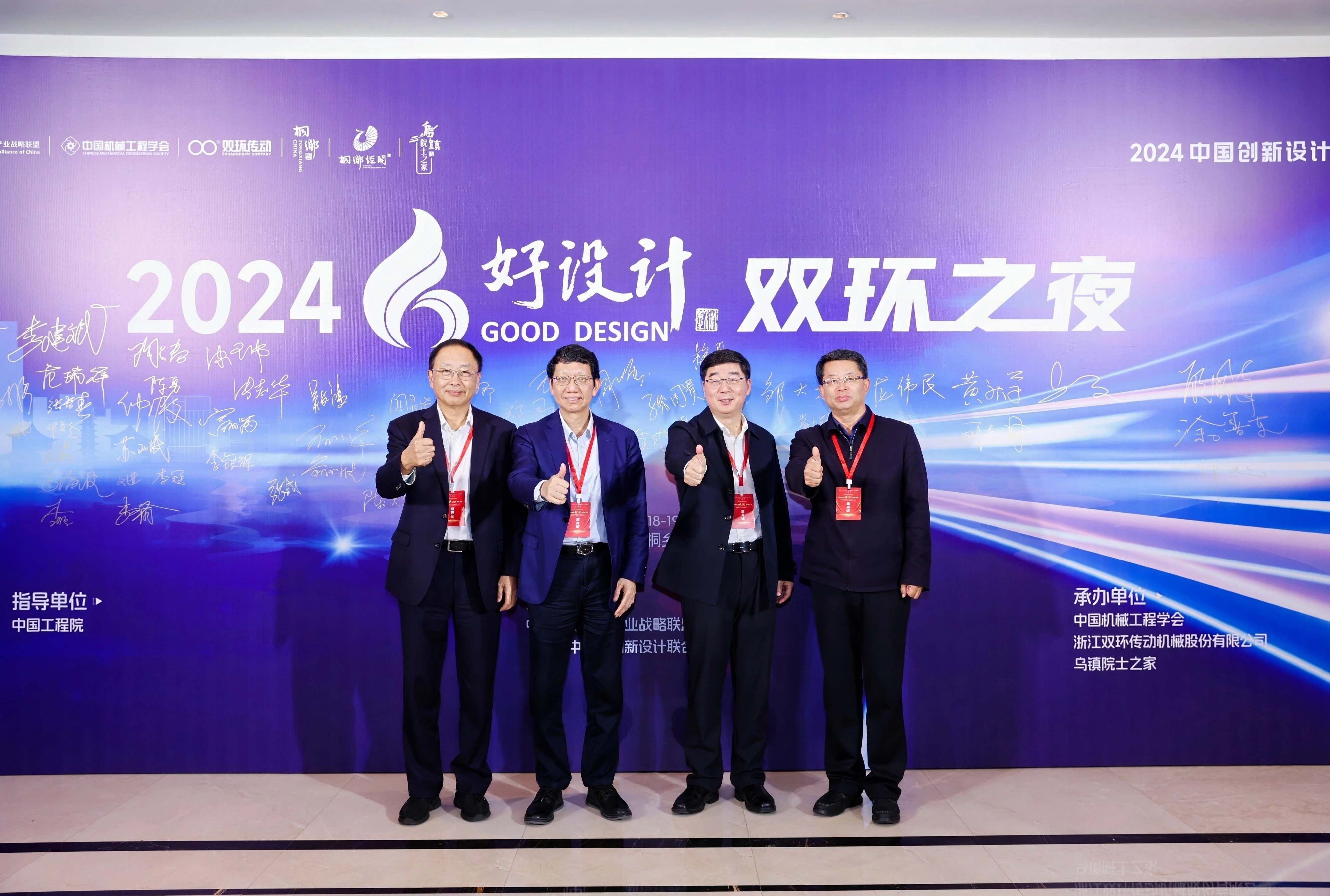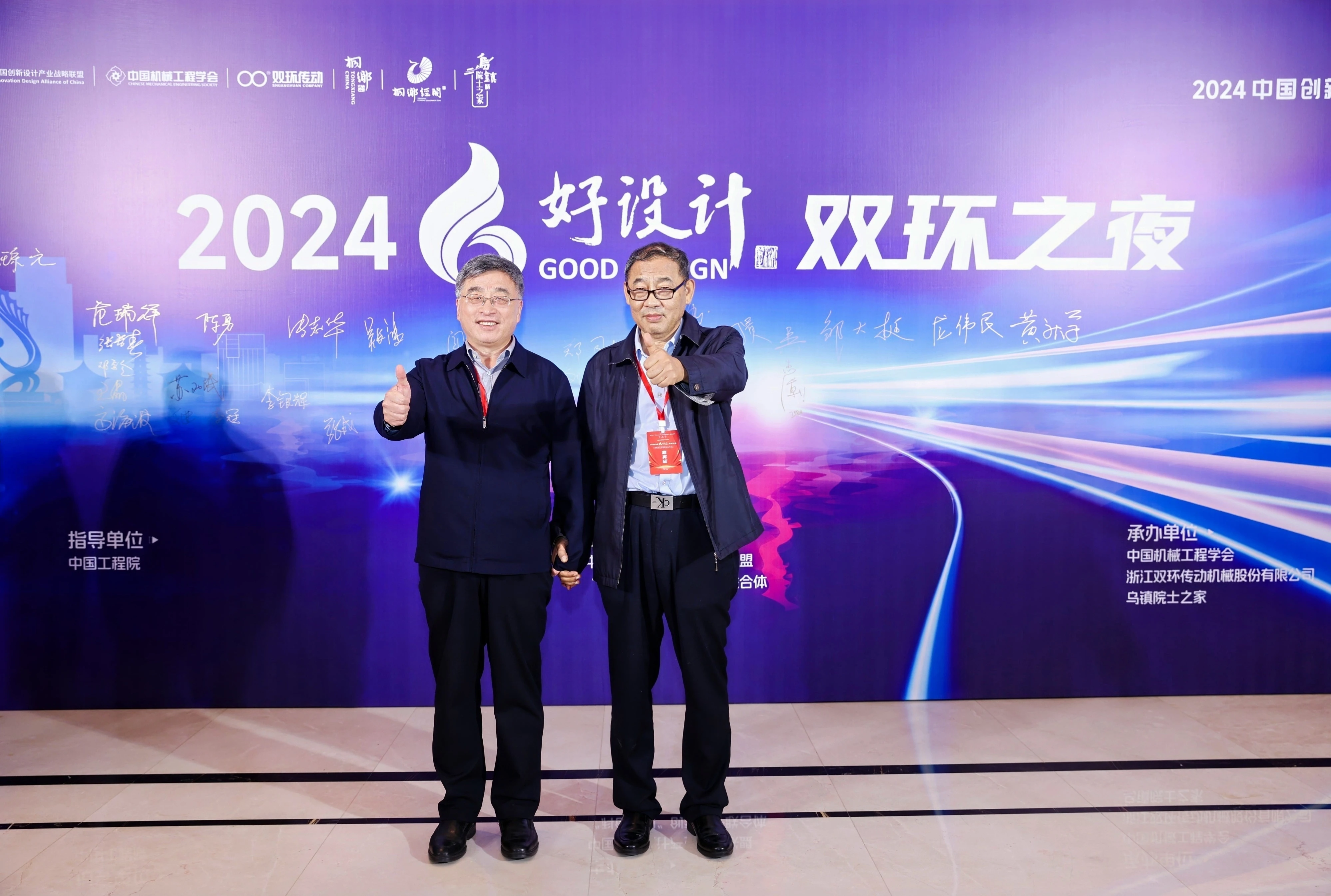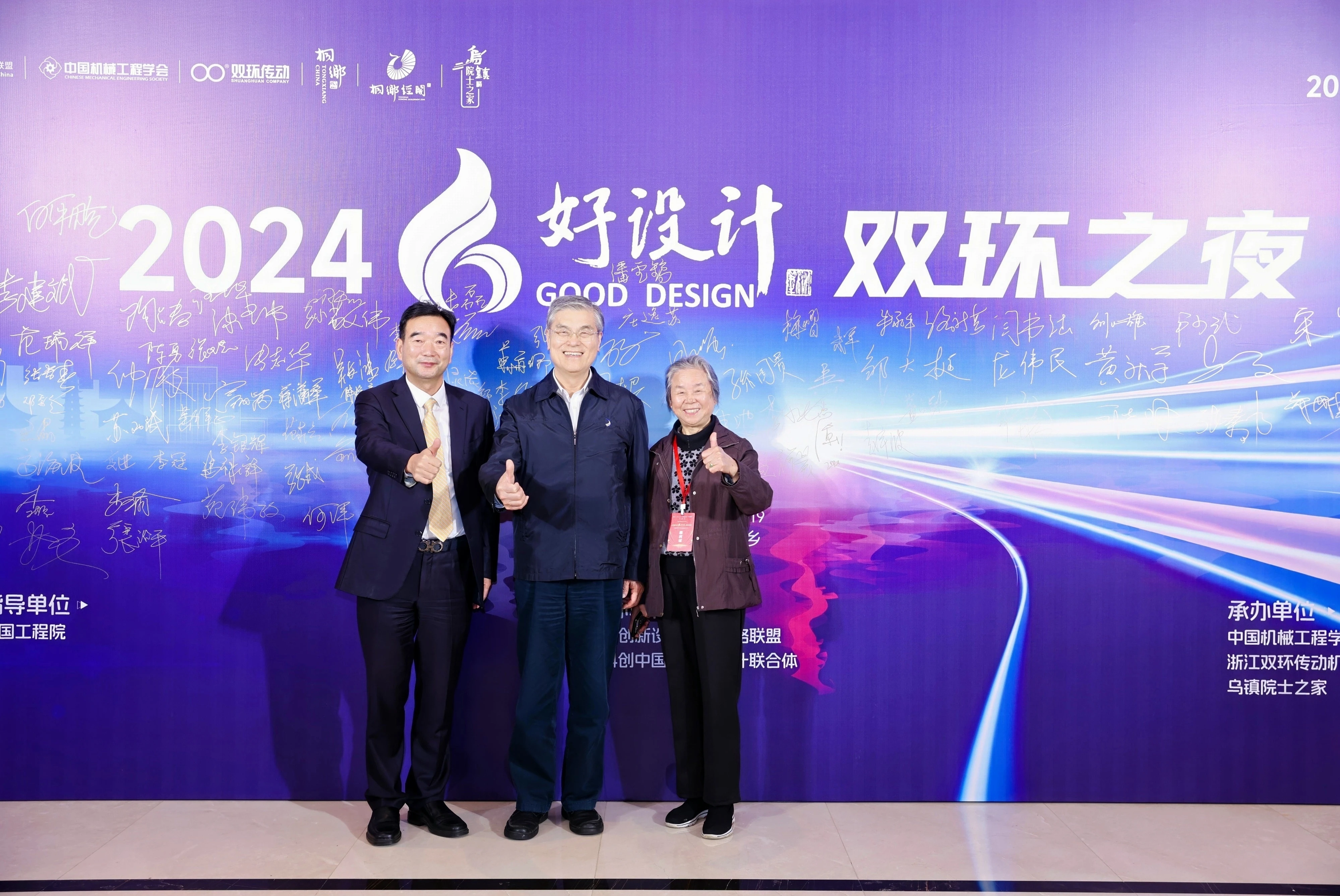双环之夜,群星璀璨。11月18日晚上,中国工程院院士、浙江大学教授潘云鹤,中国工程院院士、浙江大学教授谭建荣,中国工程院院士、哈尔滨工业大学教授邓宗全,中国工程院院士、太原理工大学教授、中国机械工程学会副理事长黄庆学,中国科学院院士、中国北方车辆所首席专家毛明,中国工程院院士、华东理工大学教授涂善东,中国工程院院士、同济大学教授吴志强,中国科学院院士、中国运载火箭技术研究院首席总师范瑞祥,中国工程院院士、北京航空航天大学教授焦宗夏,苏州大学孙立宁院士,加拿大工程院院士、天津大学教授顾佩华,国务院参事、国家质检总局原总工程师张纲,国家质量监督检验检疫总局原副局长陈钢,中国机械工程学会原常务副理事长张彦敏,国家科学技术奖励工作办公室原主任邹大挺等院士、专家、领导,桐乡市委副书记、市长王坚等桐乡市委市政府相关领导,来自行业、企业、高校的专家与领导,第九届好设计奖获奖单位代表等出席“双环之夜”活动。活动还特别邀请到玉环市委常委、常务副市长詹福章,浙大金融研究院上市公司研究中心主任包纯田,浙股交董事长蒋潇华,水晶光电董事长林敏,九洲药业董事长花莉蓉,浙大联创董事长林光等领导与嘉宾出席。