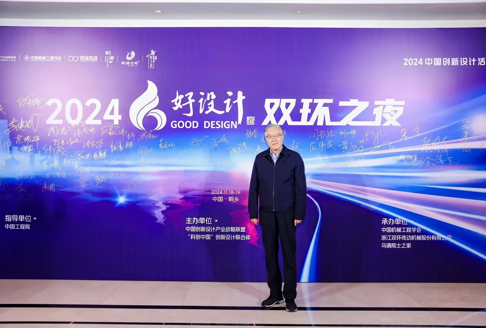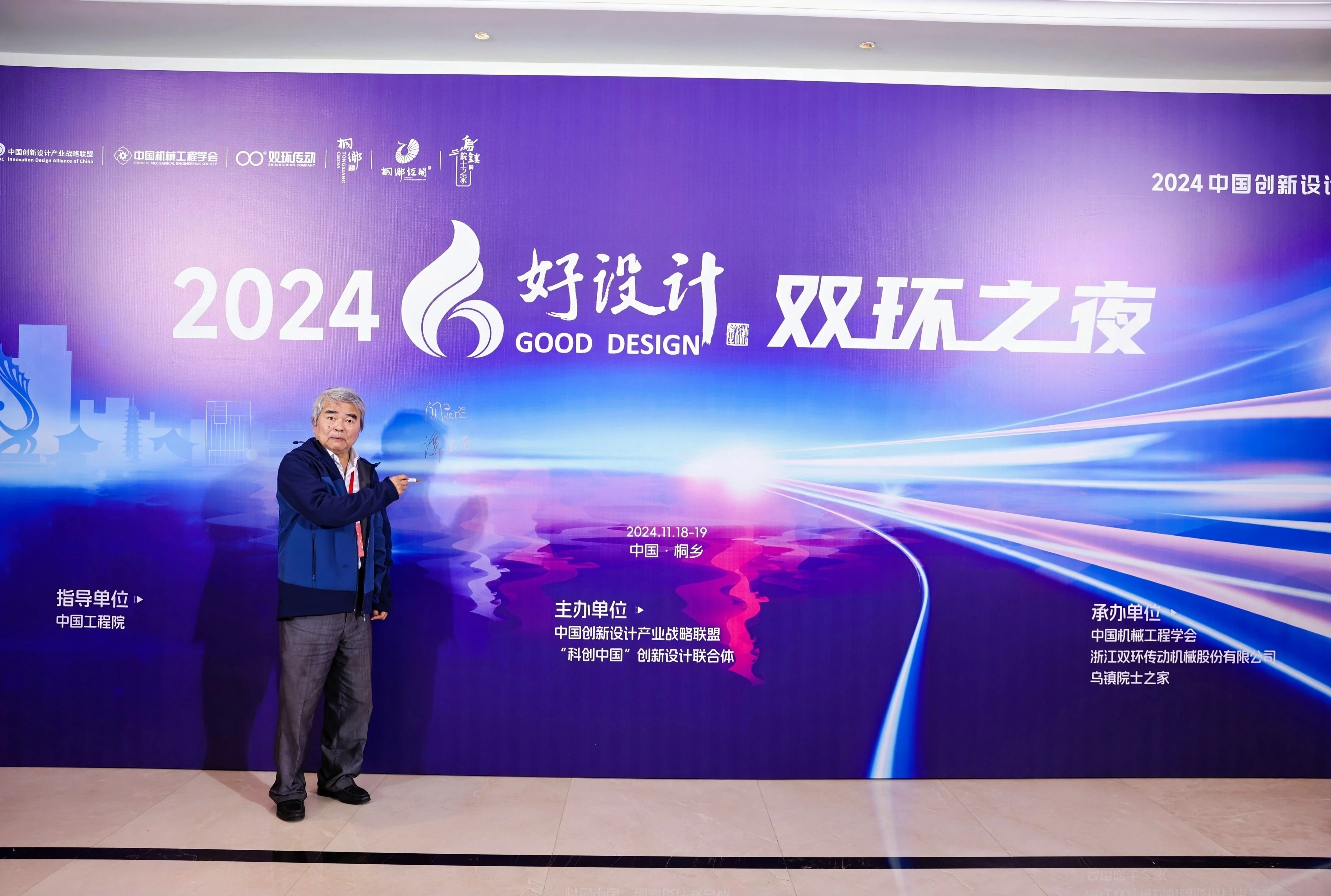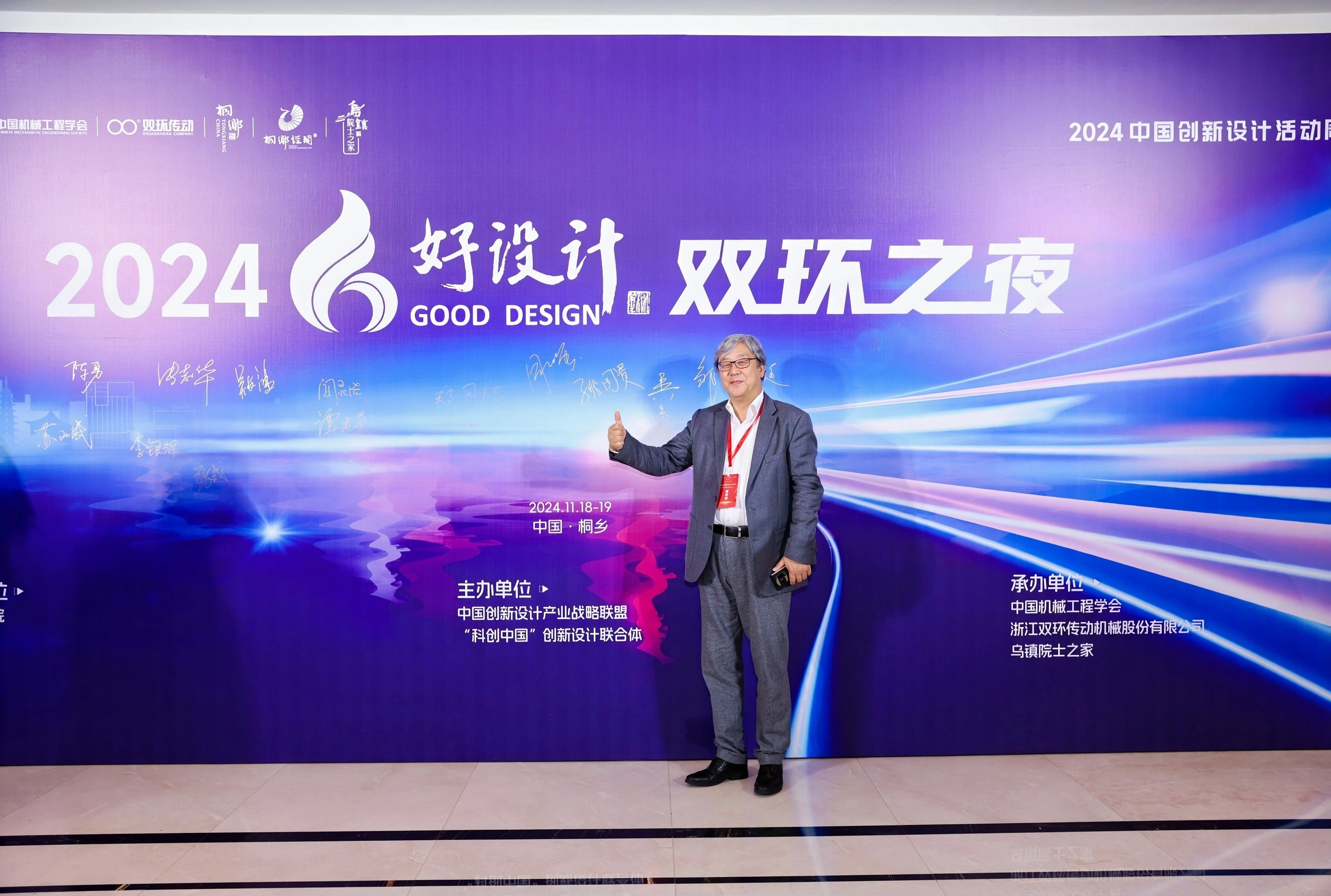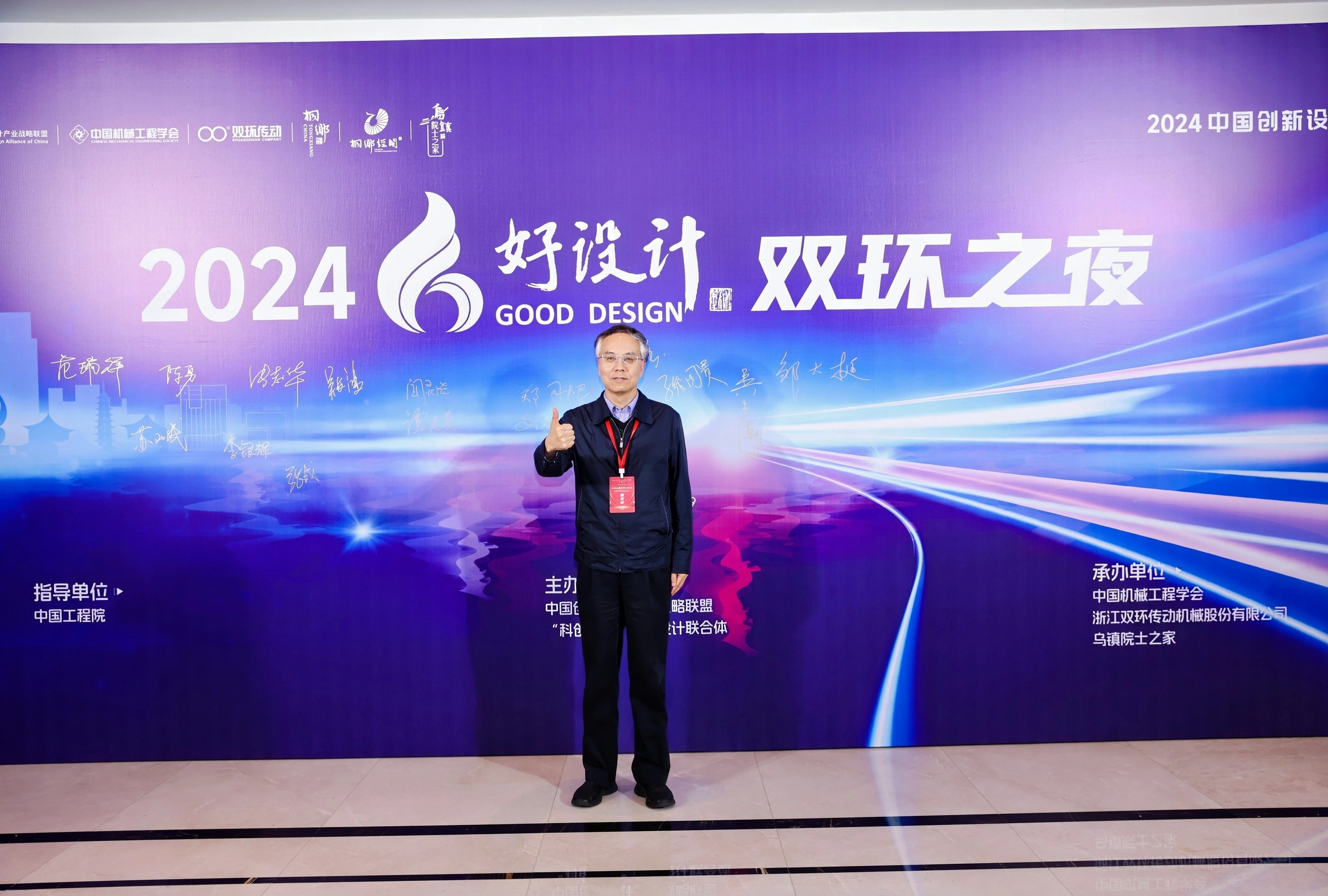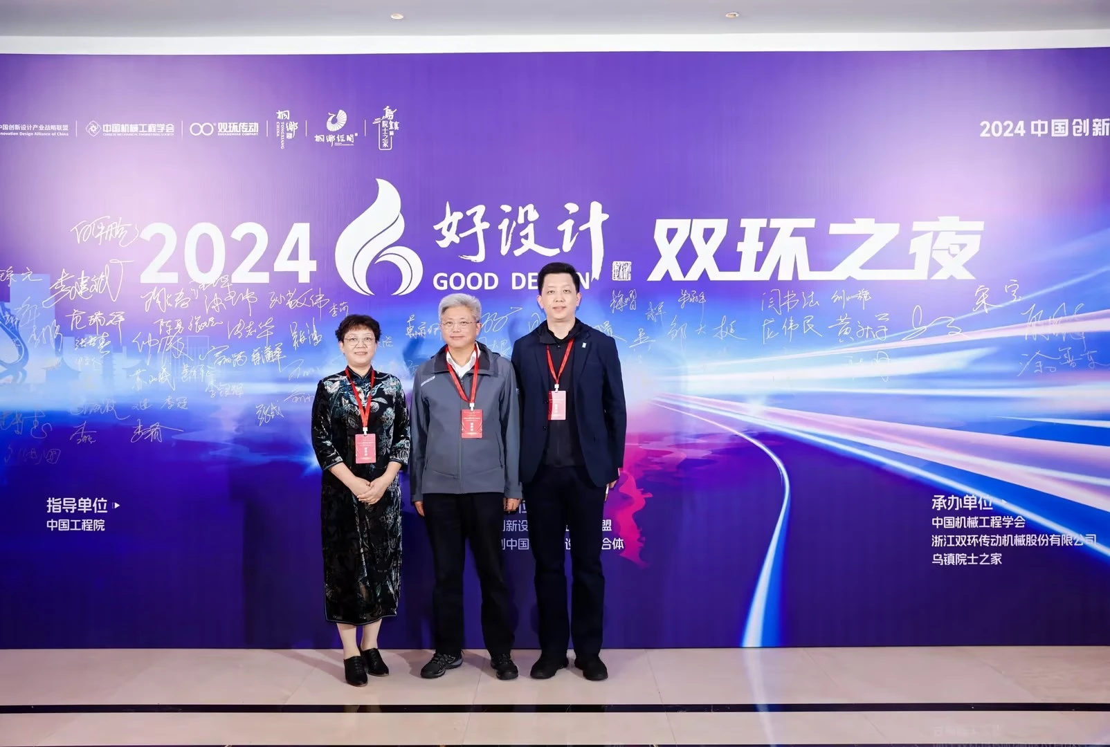 双环之夜,群星璀璨。11月18日晚上,中国工程院院士、浙江大学教授潘云鹤,中国工程院院士、浙江大学教授谭建荣,中国工程院院士、哈尔滨工业大学教授邓宗全,中国工程院院士、太原理工大学教授、中国机械工程学会副理事长黄庆学,中国科学院院士、中国北方车辆所首席专家毛明,中国工程院院士、华东理工大学教授涂善东,中国工程院院士、同济大学教授吴志强,中国科学院院士、中国运载火箭技术研究院首席总师范瑞祥,中国工程院院士、北京航空航天大学教授焦宗夏,苏州大学孙立宁院士,加拿大工程院院士、天津大学教授顾佩华,国务院参事、国家质检总局原总工程师张纲,国家质量监督检验检疫总局原副局长陈钢,中国机械工程学会原常务副理事长张彦敏,国家科学技术奖励工作办公室原主任邹大挺等院士、专家、领导,桐乡市委副书记、市长王坚等桐乡市委市政府相关领导,来自行业、企业、高校的专家与领导,第九届好设计奖获奖单位代表等出席“双环之夜”活动。活动还特别邀请到玉环市委常委、常务副市长詹福章,浙大金融研究院上市公司研究中心主任包纯田,浙股交董事长蒋潇华,水晶光电董事长林敏,九洲药业董事长花莉蓉,浙大联创董事长林光等领导与嘉宾出席。