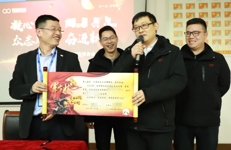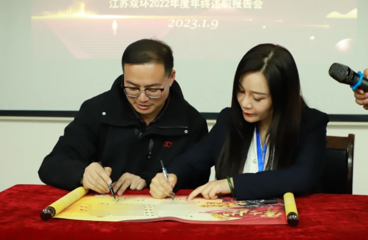 最后,目标责任状签字仪式上,江苏双环领导分别与各部门长签订了2023年经营目标军令状,同时,各部门参会人员在各自部门长的带领下,高呼部门口号 在线传媒站,将会场气氛推向高潮。