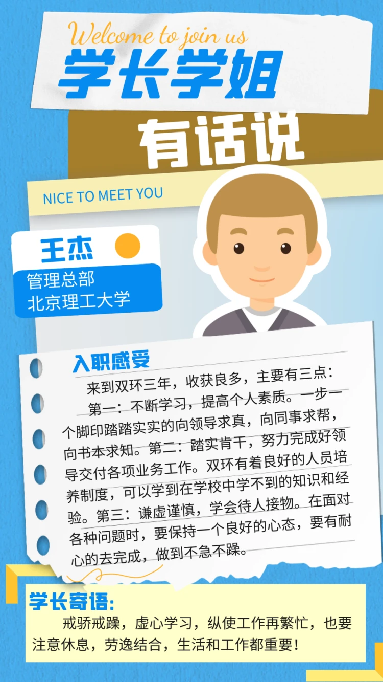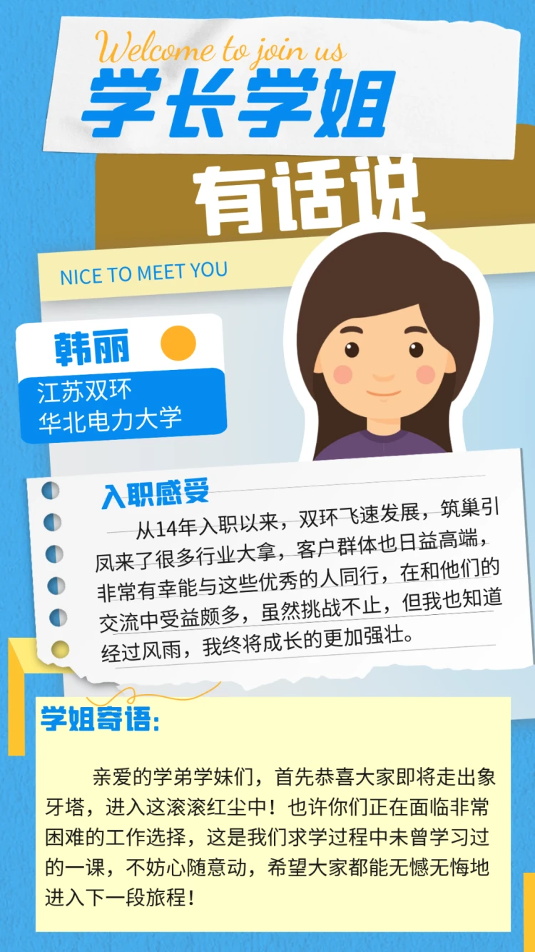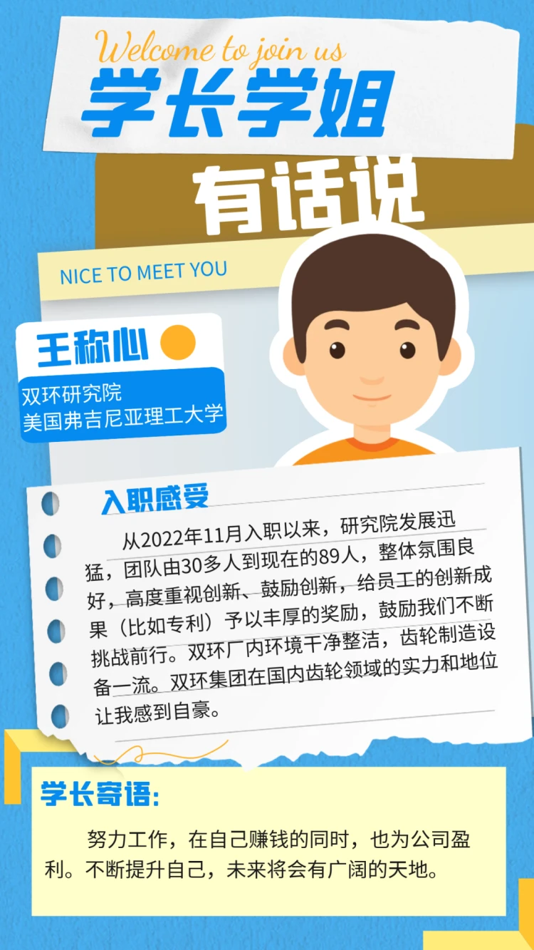 对于正在择业的学弟学妹们 蜜桃传媒视频在线观看,双环的学长学姐给出了自己入职双环的一些切实感受和真诚寄语,正在观望的你不妨看看学长学姐们的精彩分享吧。