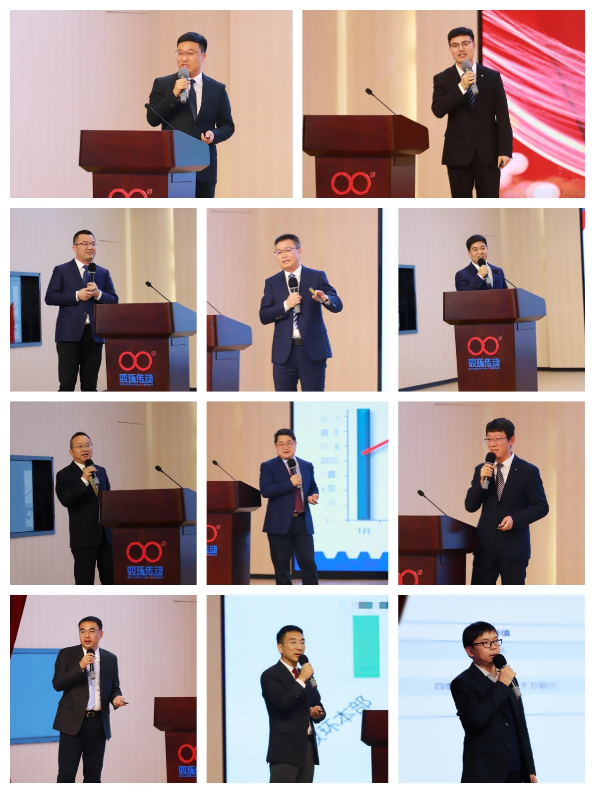 双环本部,江苏双环,嘉兴双环,重庆双环,大连环创,双环供应链,环动科技,环智云创 在线传媒站,环驱科技,双环研究院,江苏环欧等各子公司总经理或相关负责人做年度工作汇报,全面总结回顾了2023年工作落实情况,展示亮点与成就,找出暗点与问题,并深刻剖析原因,提出改进方案,同时明确了2024年重点工作计划,为新一年的发展做好准备。