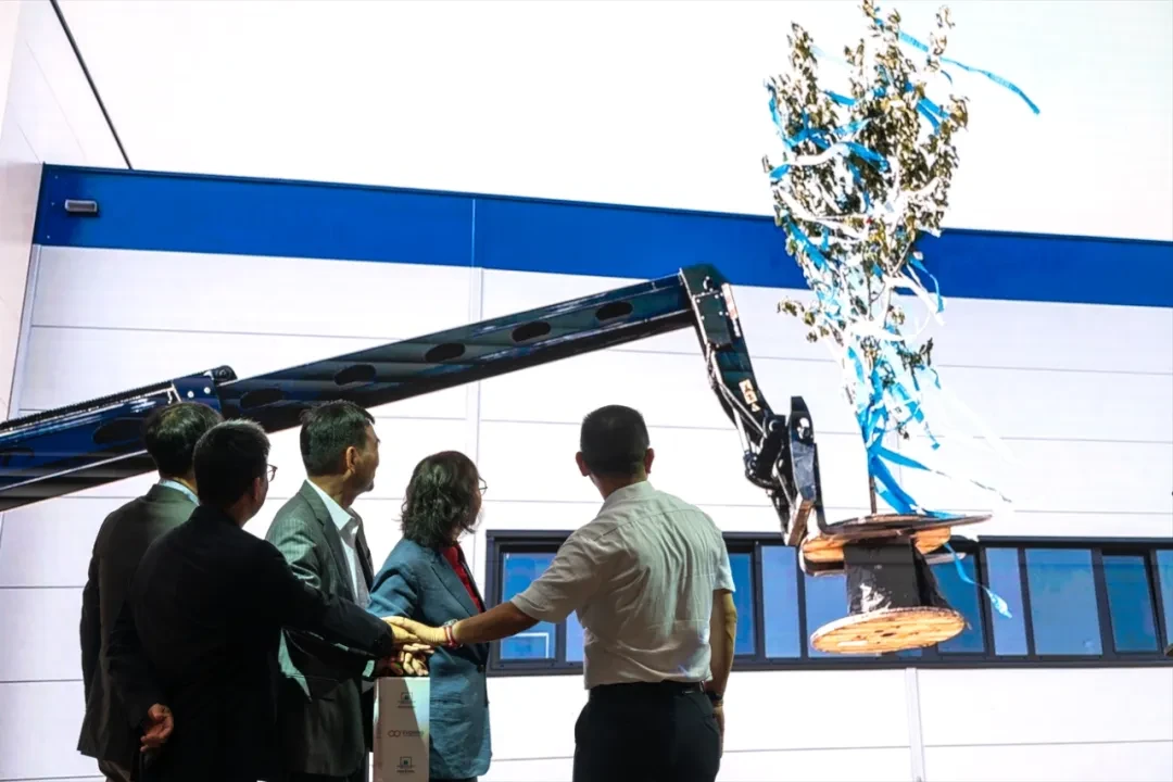 在封顶环节,蜜桃传媒各位领导及嘉宾一同按下仪式启动按钮 蜜桃传媒视频资源,随着吉祥树通过升高车缓缓升至厂房最高点并安置,封顶仪式宣告成功,现场一片欢腾。