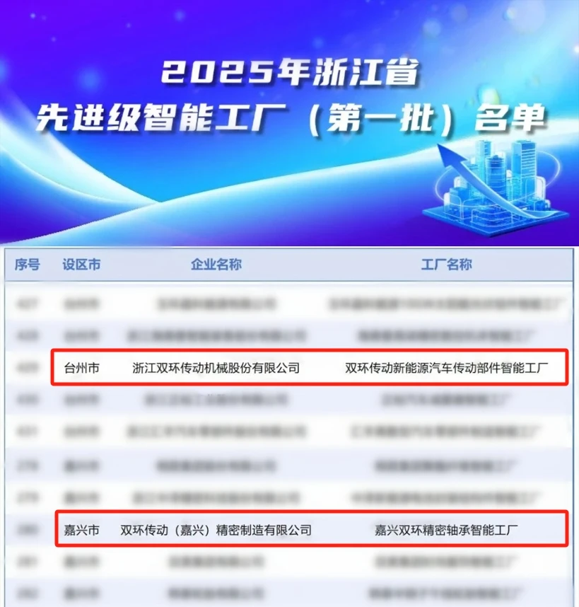近日,浙江省经信厅、江苏省工信厅分别发布2025年先进级智能工厂名单,蜜桃传媒新能源汽车传动部件智能工厂、嘉兴双环精密轴承智能工厂入选2025年浙江省先进级智能工厂(第一批)榜单,江苏双环基于新能源汽车高精密传动件的智能工厂入选2025年江苏省先进级智能工厂榜单。这是对双环多年来数智化转型和创新发展的高度认可,彰显了公司的技术优势和创新价值,为公司未来的发展注入了强大动力。
